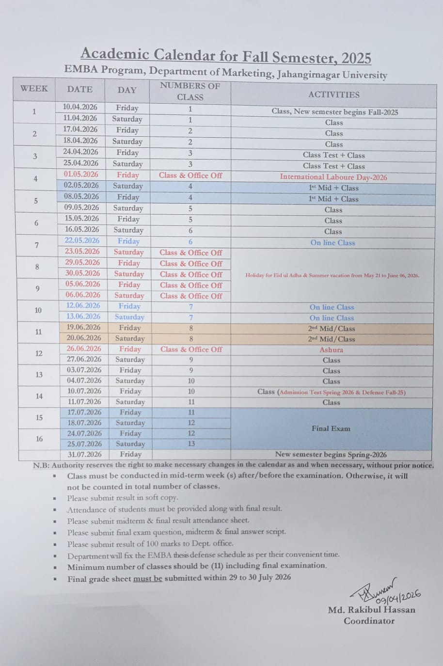 Fall-2025 এর একাডেমিক কার্যক্রম উক্ত ক্যালন্ডার অনুযায়ী সম্পন্ন হবে। সবাই উক্ত ক্যালেন্ডার ফলো করার জন্য অনুরোধ করা হলো।